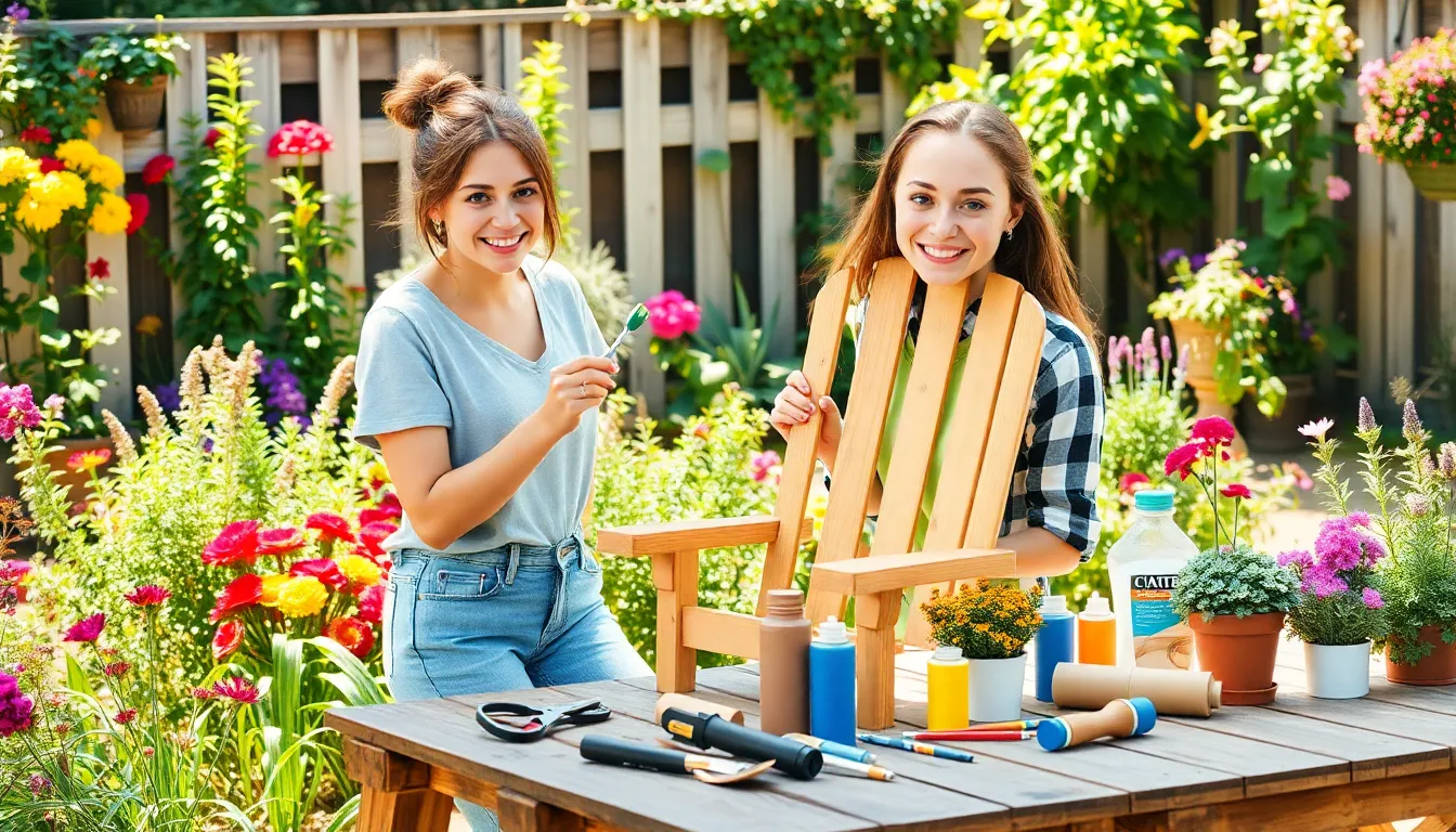 Creating raised garden beds offers an organized way to grow vegetables and flowers. Planting a vertical garden maximizes space while adding greenery. Building trellises for climbing plants can enhance garden aesthetics. Installing stepping stones leads to a more inviting outdoor area. Using planters made from recycled materials adds uniqueness. Simple bird feeders attract wildlife while enriching garden experiences.